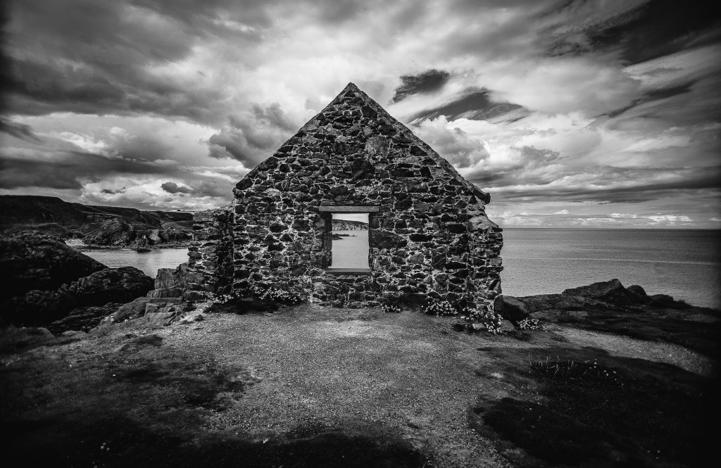 ‘Heritage Found’ (pictured above), which funnily enough is the newest piece. I took it in Scotland in July. I knew that my Grandad had died on board HMS Hood in the Second World War, and that he’d lived in Portsmouth. I didn’t know that he and his mother moved to Portsmouth from Portsoy in Scotland when his father died in the First World War. Both of their names are on the War Memorial there, and my Grandad is also on the Naval Memorial at Southsea. At the time I was very excited about seeing where he grew up, but got very melancholic when I was there, finding out that my great-Grandad was part of that whole clan thing. It made me feel that my great-Grandmother was so heartbroken by the loss she couldn’t stay there anymore. I took the photo of this ruined house on top of a hill above the harbour, where I was sitting taking it all in. Also realising I wasn’t as English as I thought I was.